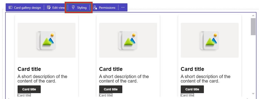 Once all configurations are complete, users can style the Card Gallery by clicking the Styling button on the component.