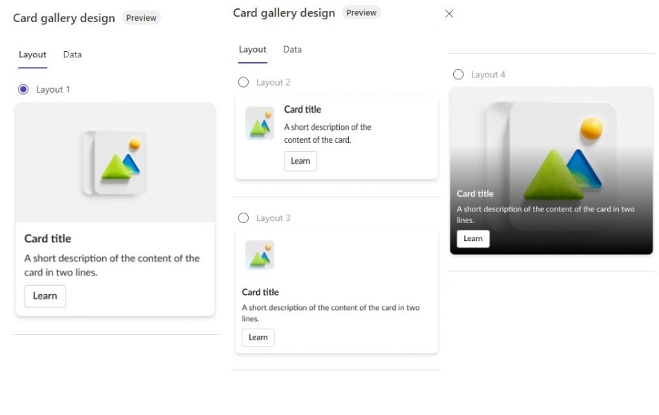 3. In the Layout tab, users can choose from four distinct options for configuring the card format (currently available in preview mode with these four layouts):