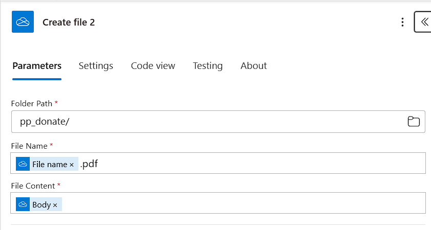 Save the final PDF file by adding another Create file action to store the completed PDF in a specified location, such as SharePoint or OneDrive.