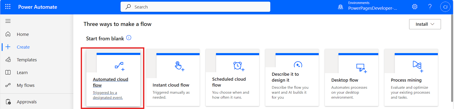 Firstly, log into Power Automate and choose an automated cloud flow.