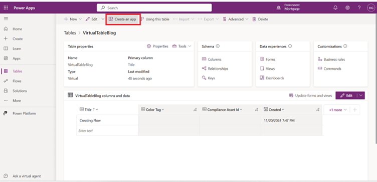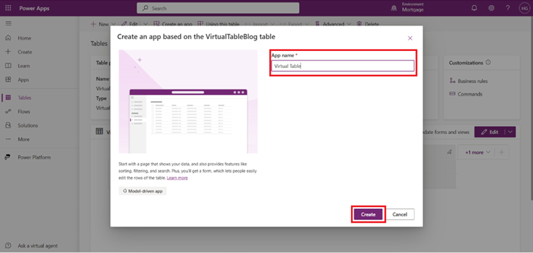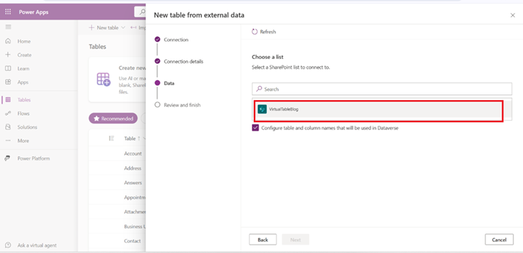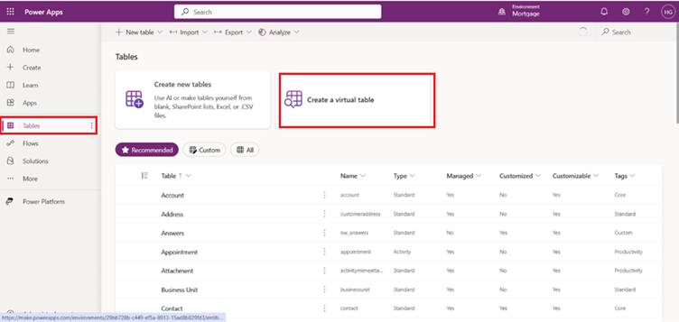 Now in power apps, on the left pane, choose Tables, then click on Create Virtual Table.
