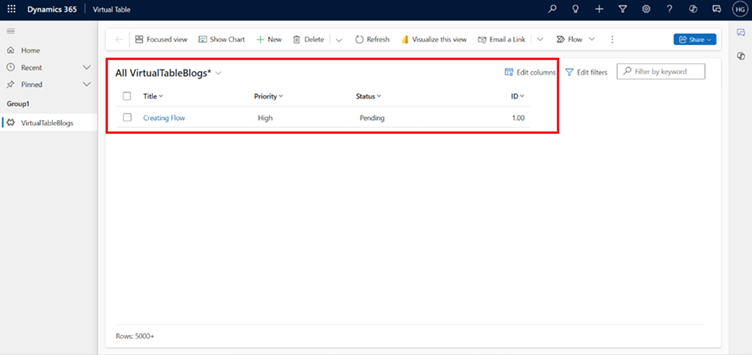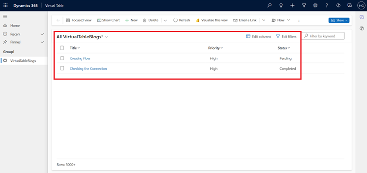 Once set up, virtual table data can be viewed in the relevant tables section of Dynamics 365. You can interact with the data as if it were native to Dataverse. This enables seamless integration of external data into Dynamics 365.