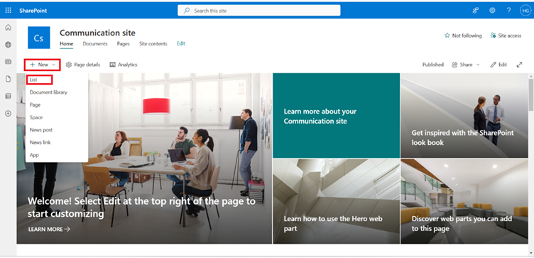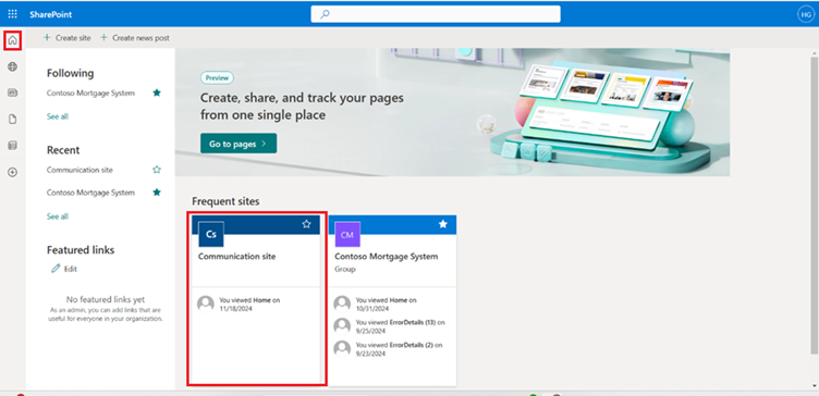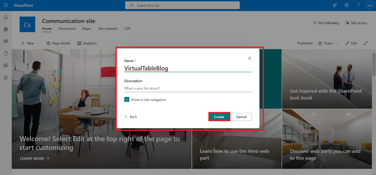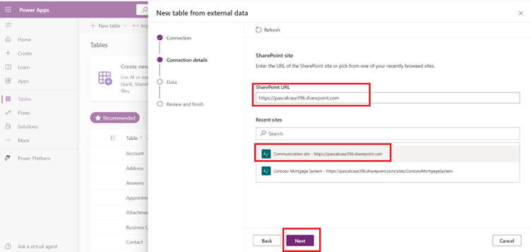 From the list of SharePoint sites, choose the Communication Site you created earlier and click Next.