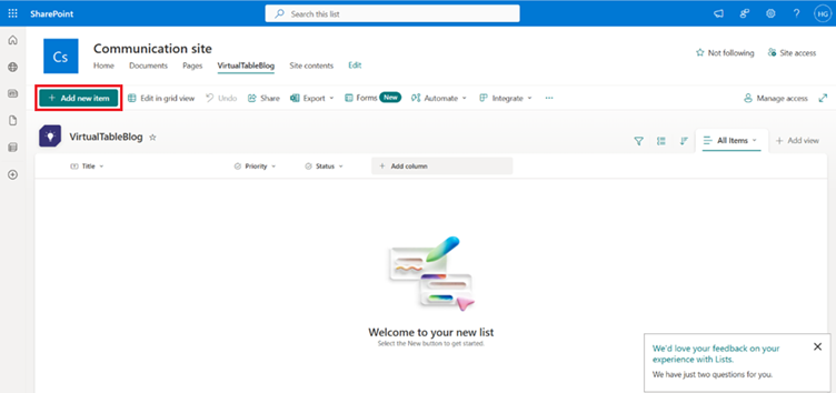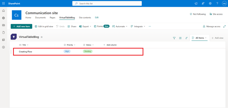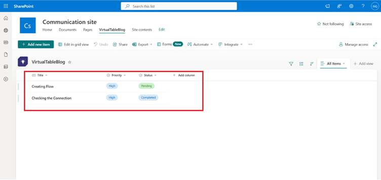 In Dynamics 365 navigate to the virtual table you created. Now you can see the items that were previously added to the SharePoint list.
