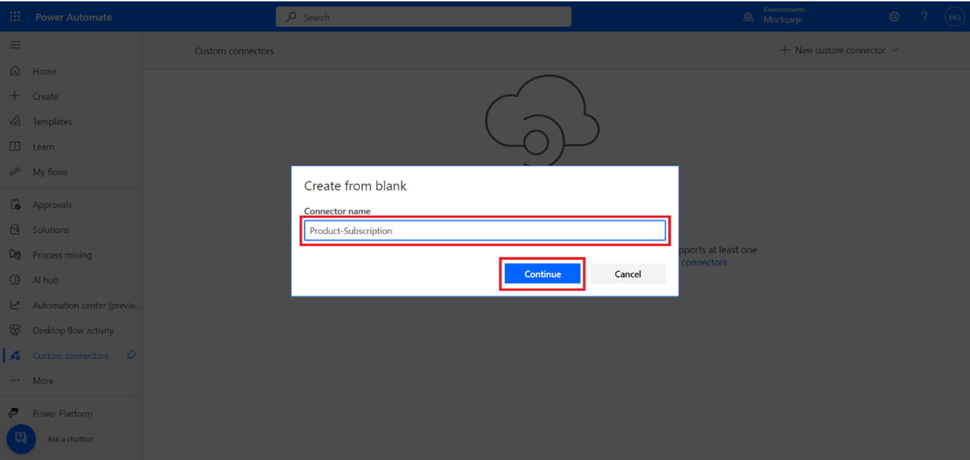 Click on New Connector and then select Create from blank to start defining your custom connector.