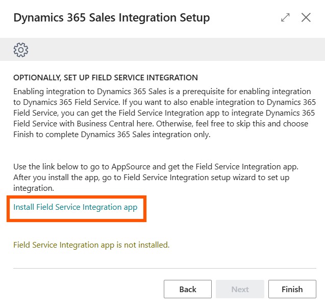 Install the Field Service Integration App if you have not installed it already (the installation of this extension is completely optional).