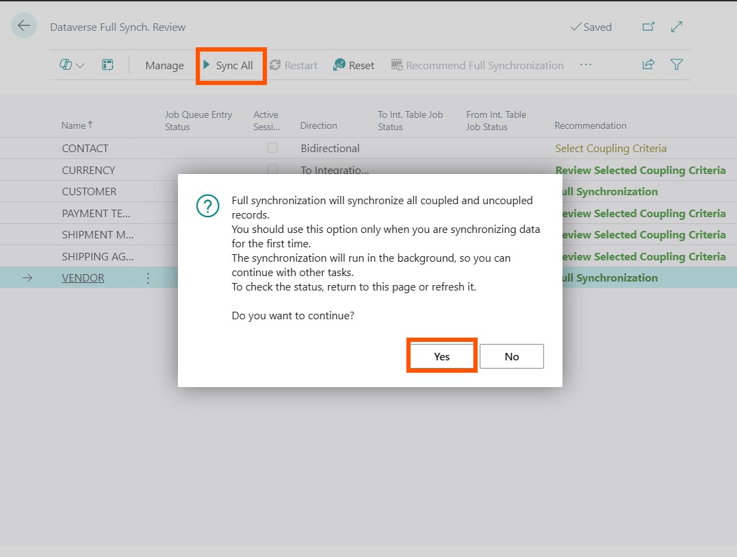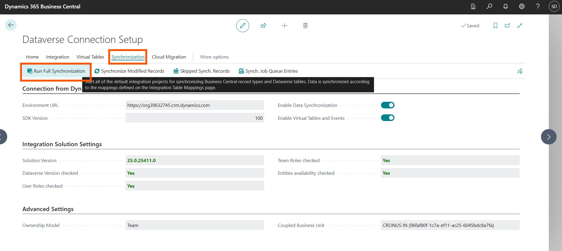 Integrating Business Central with Dynamics 365 Sales is a two-step process. First, you set up a Dataverse Connection - Test the Connection and Run Full Synchronization followed by Dynamics 365 Sales Connection - Test the Connection and Run Full Synchronization.