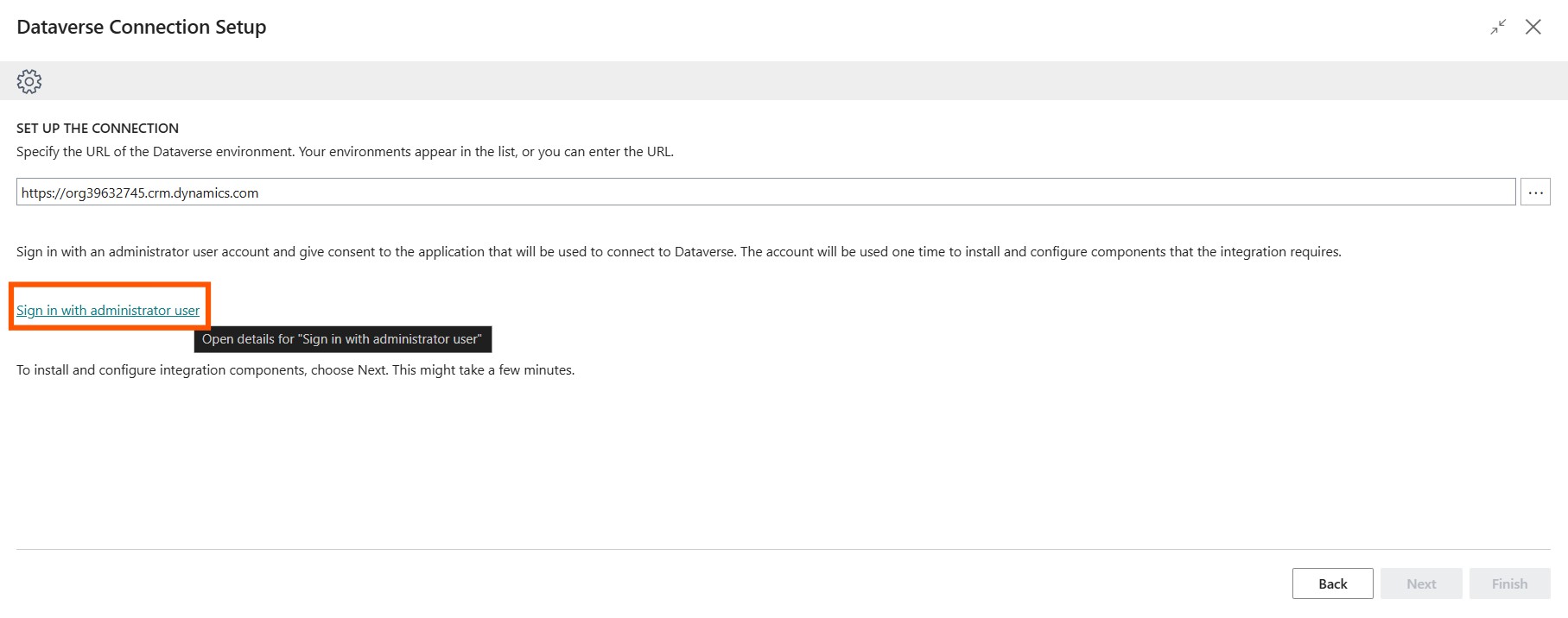Select Set up a connection to Dataverse.