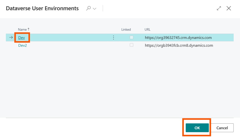 Choose your environment and click on OK.
