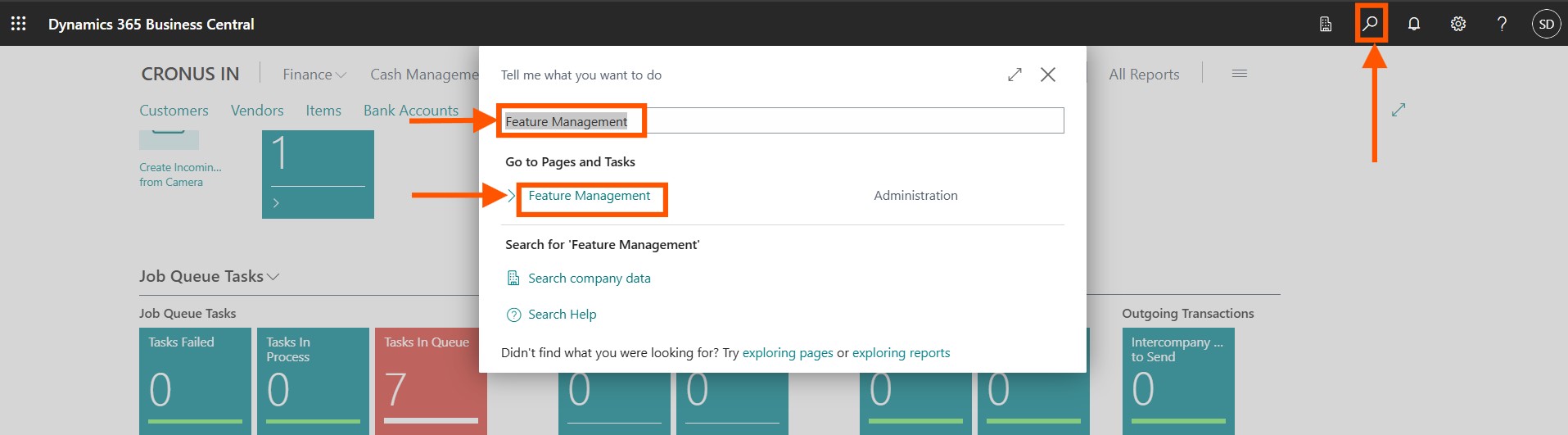 You will be able to find Feature Management by searching in the search