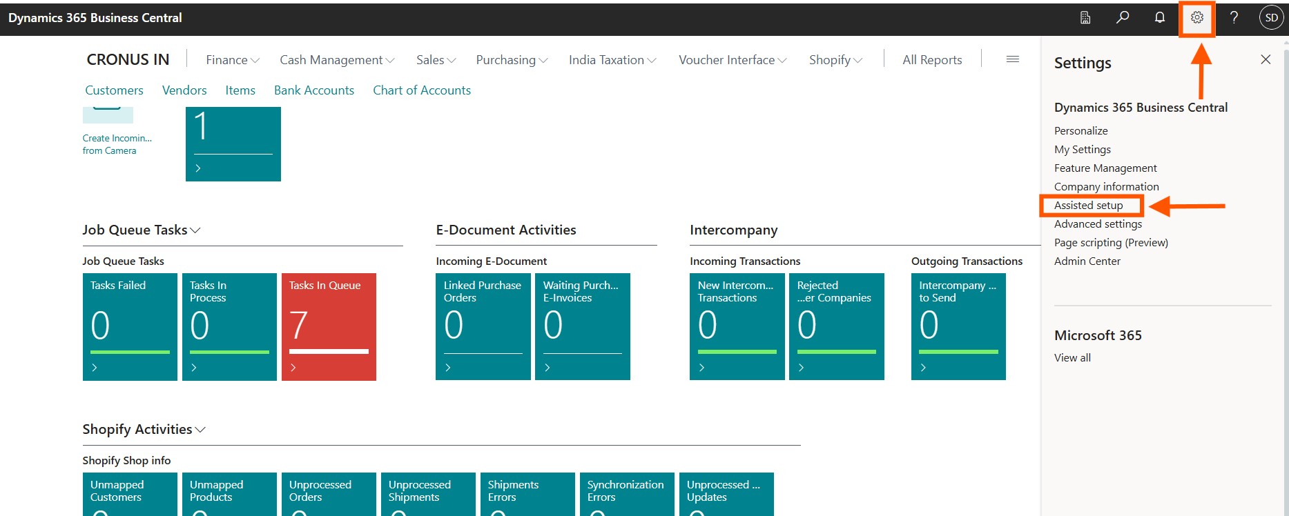 Go to Settings (top-right in Business Central) and select Assisted Setup.
