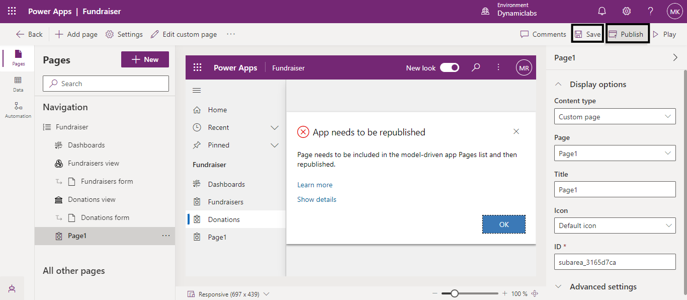 Following these steps, you have successfully added a custom page to your model-driven app in Power Apps. This new page allows you to display specific information, enhancing the functionality and user experience of your app. Custom pages allow organizations to design interfaces that meet their unique business needs. By presenting relevant information and eliminating unnecessary steps, custom pages help users complete tasks more efficiently.