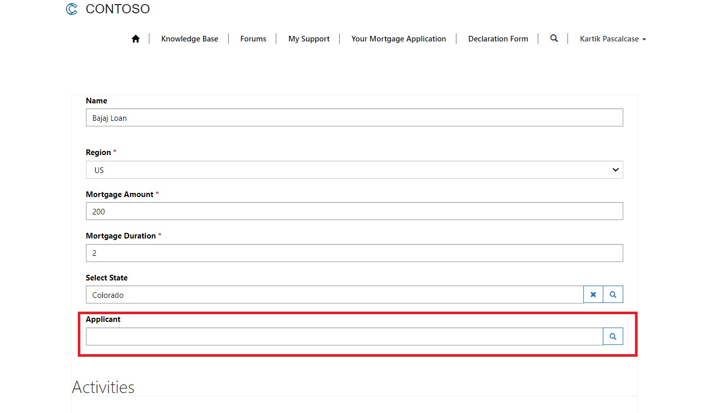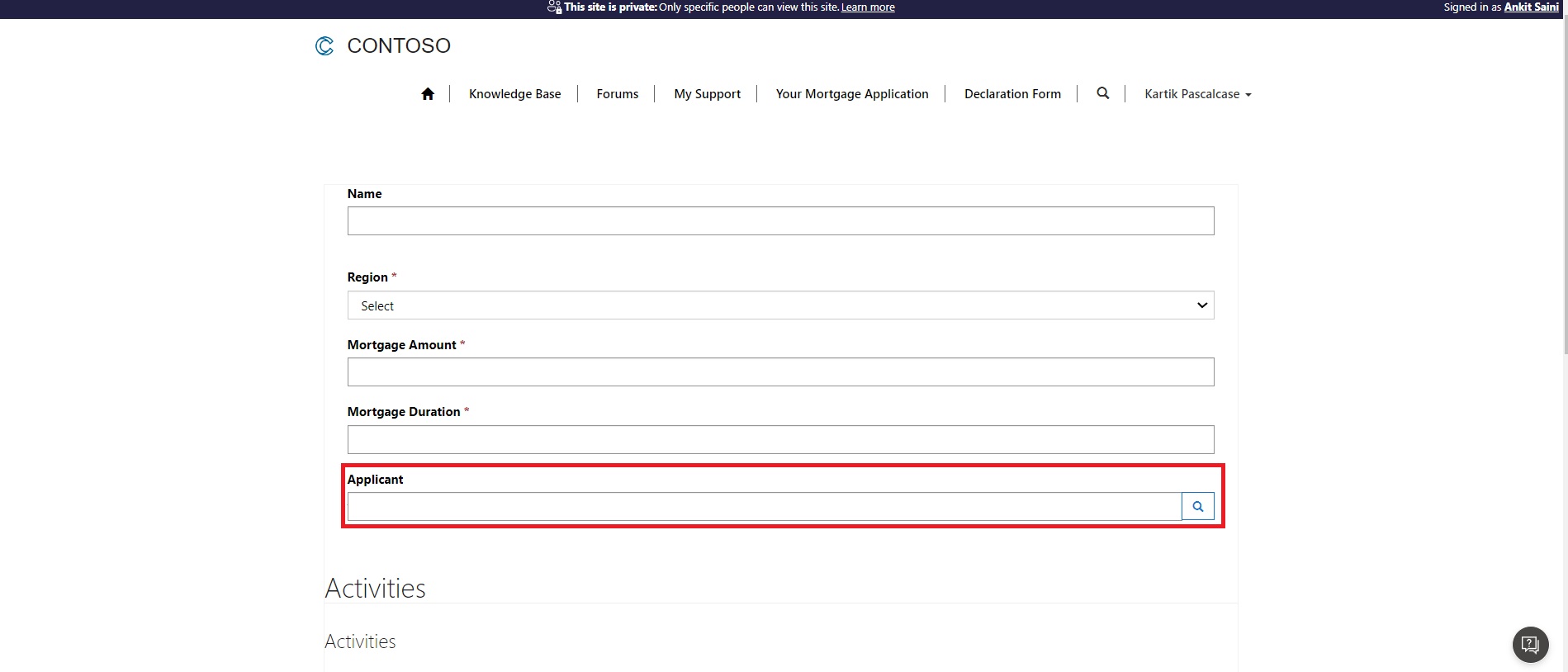The business need is, when a new record is created using above form, the Applicant lookup which is pointing to contact entity must be auto saved using current portal user login so that user should not select the value manually.