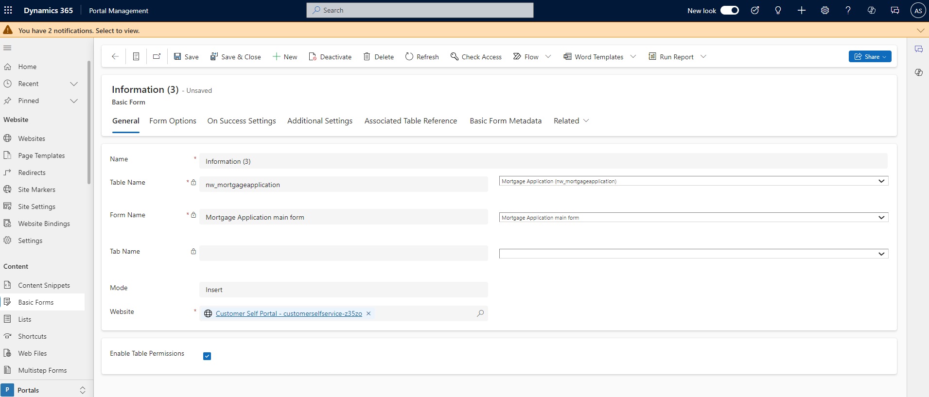 A portal app will open in a new tab. Go to the form, which in my case is the Mortgage Application Form (Information).