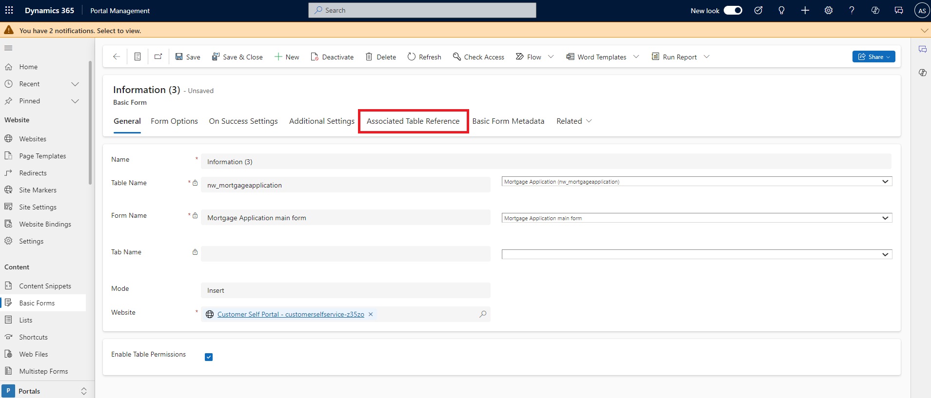 Open the form which needs to update. For my case, it’s Create Mortgage Application Form. Navigate to the form and select Tab Associated Table Reference.