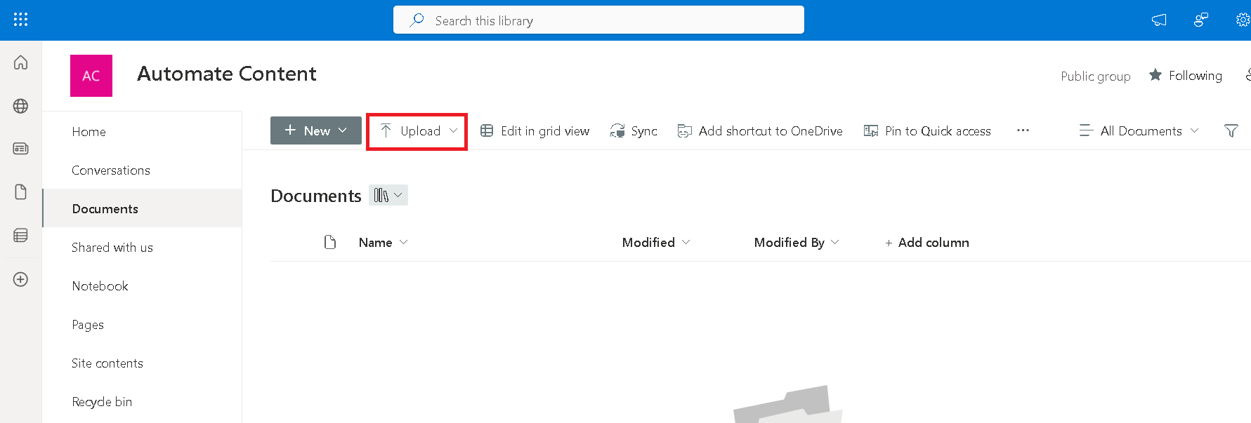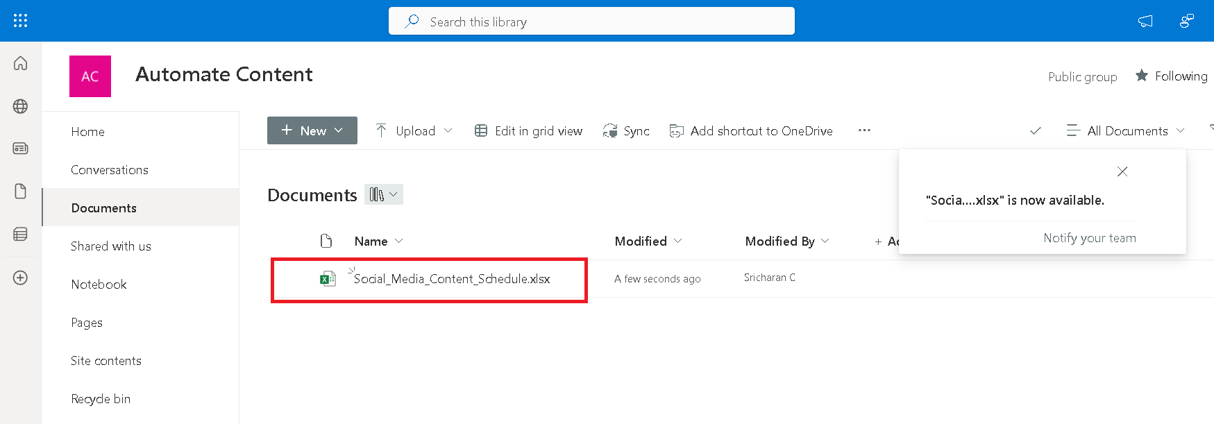 2. Save the Excel file to SharePoint so Power Automate can access it.