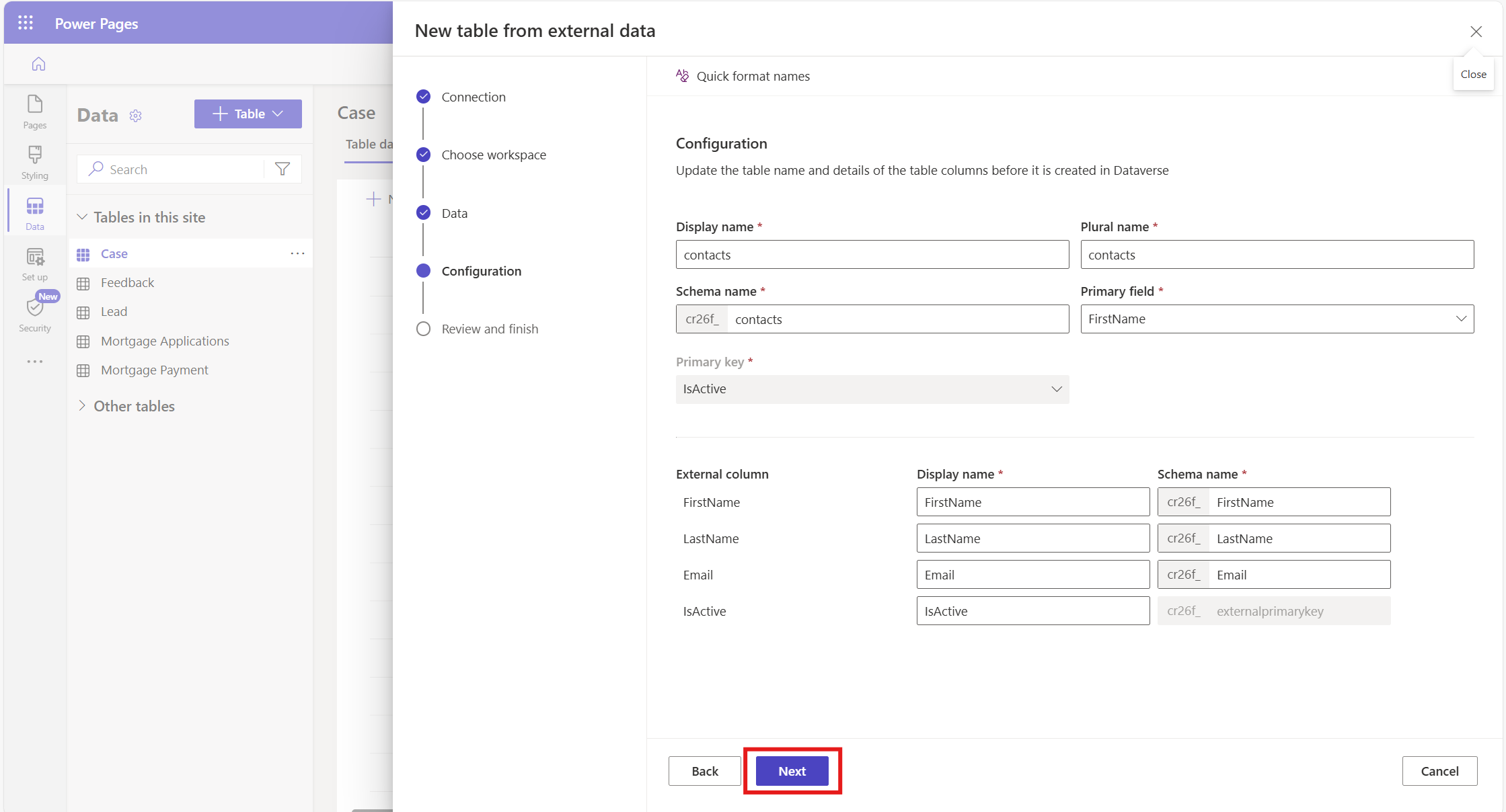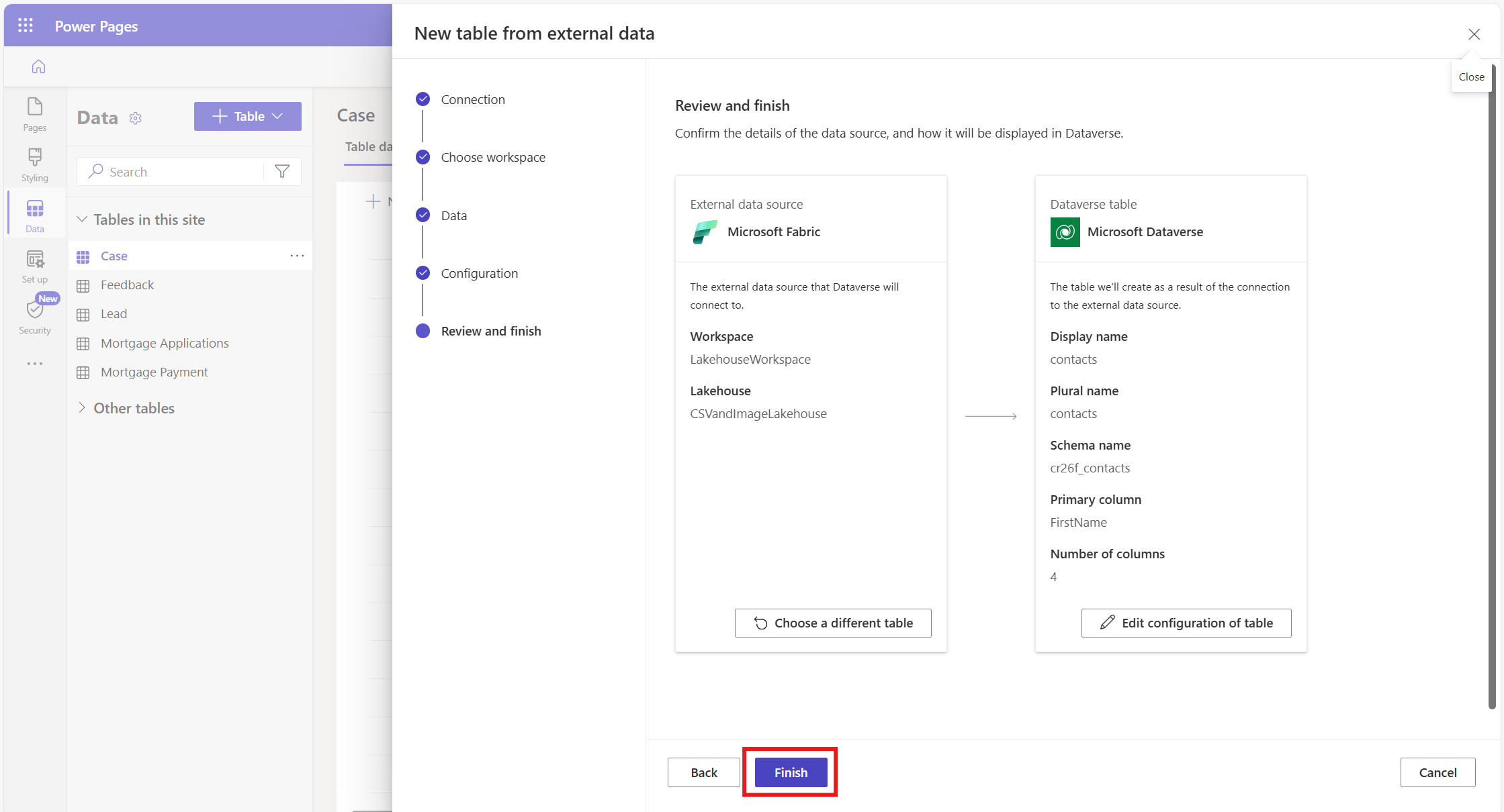 Click Finish. Now the Microsoft Fabric table will be converted into a Dataverse table.