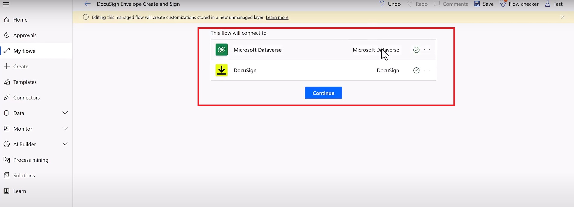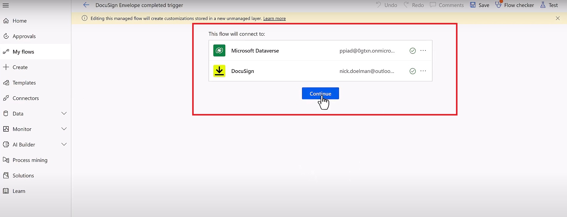 DocuSign Envelope completed Trigger -: Configure your Connections and click on Continue.