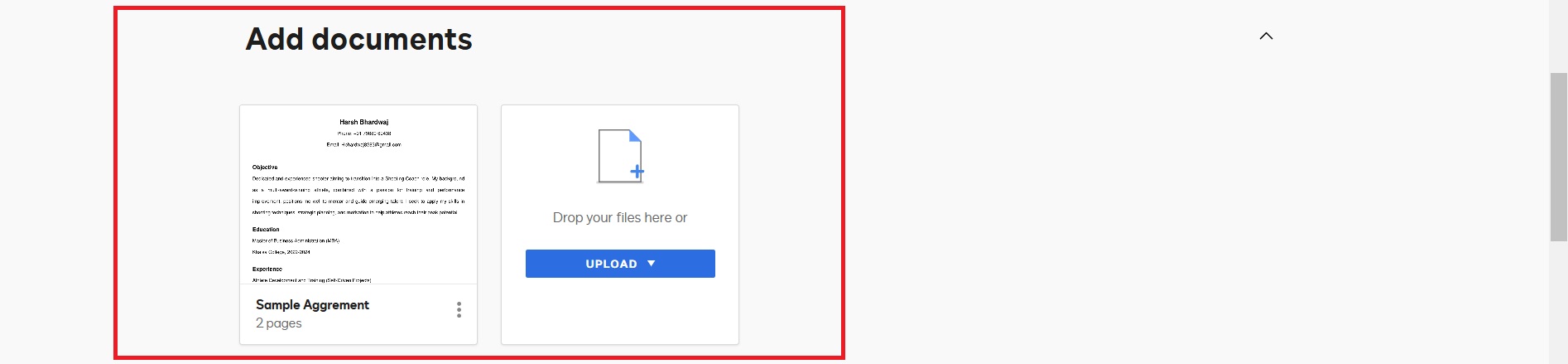 Fill in the necessary details, such as template name, role name, and upload documents. After completing all the required fields, the page will look like this.