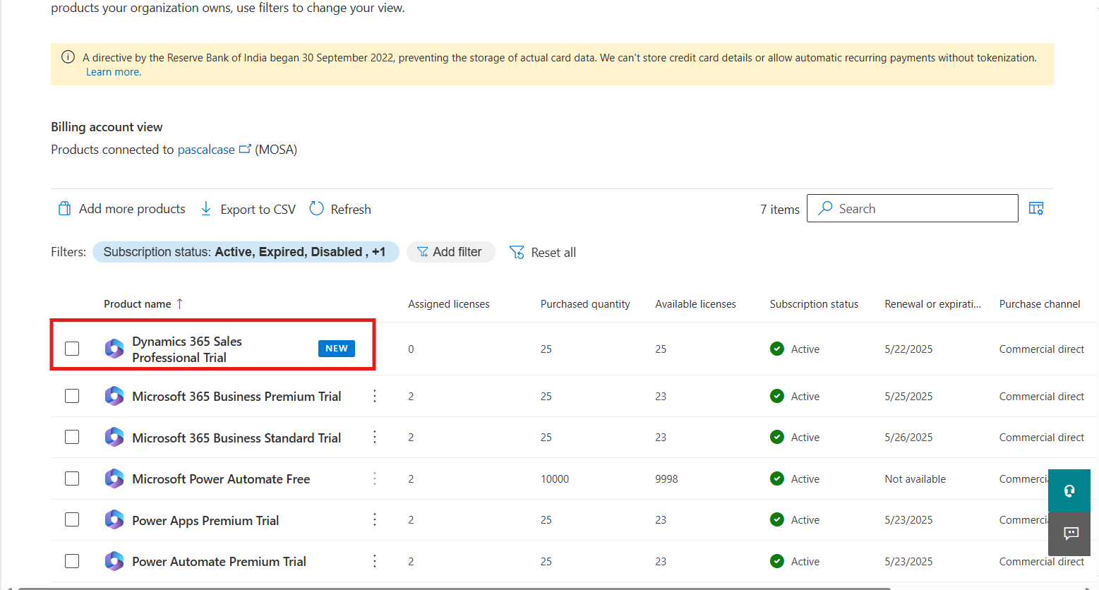 Open the Microsoft Admin Center https://admin.microsoft.com and select the billings.