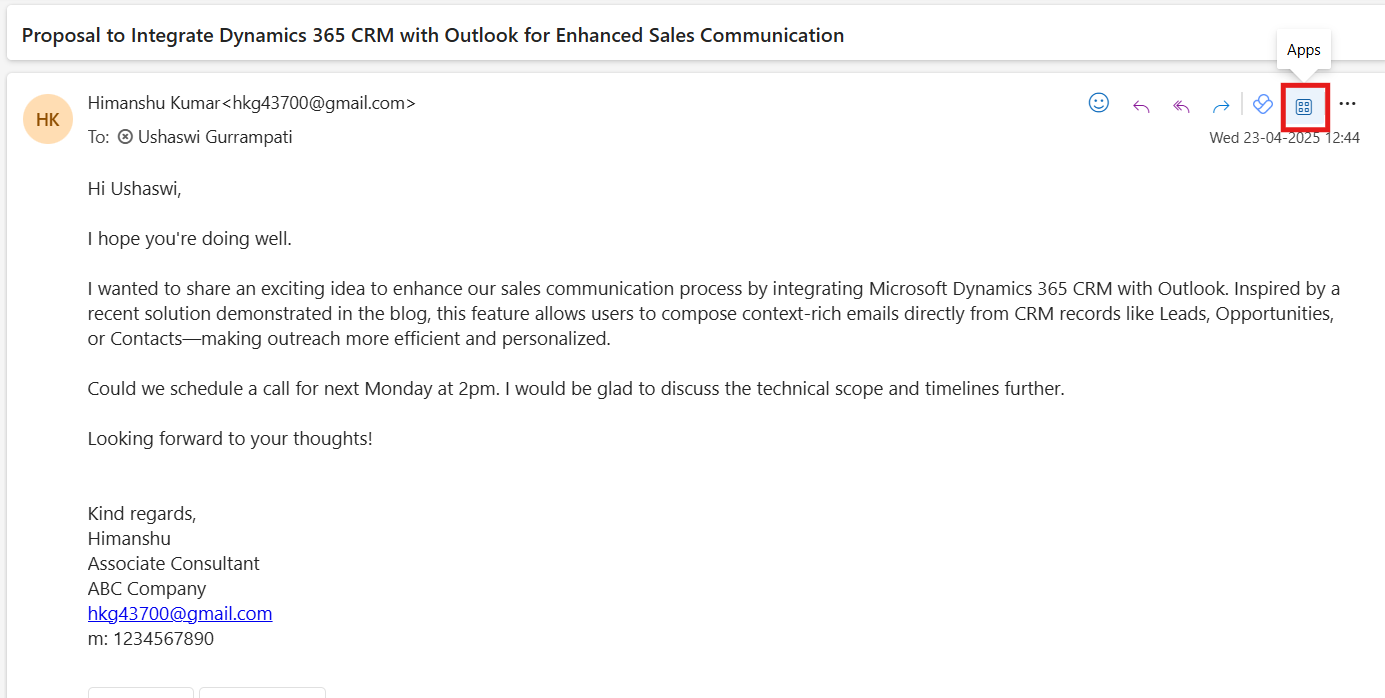 Open an existing email and click the Apps icon at the top-right corner.
