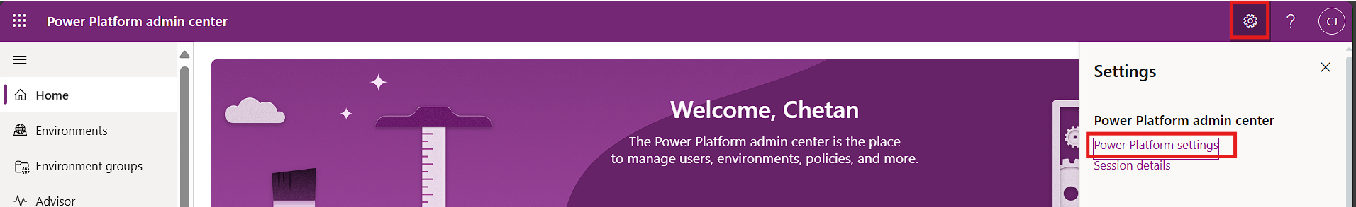 Click on settings icon and then click on Power Platform settings