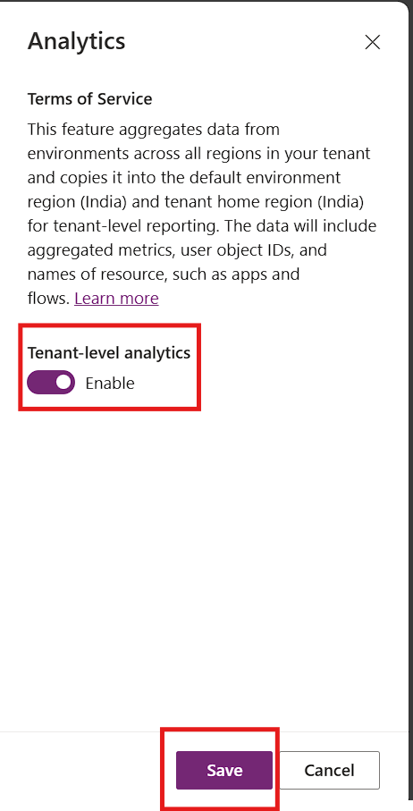Now, enable the Tenant level analytics and save it.
