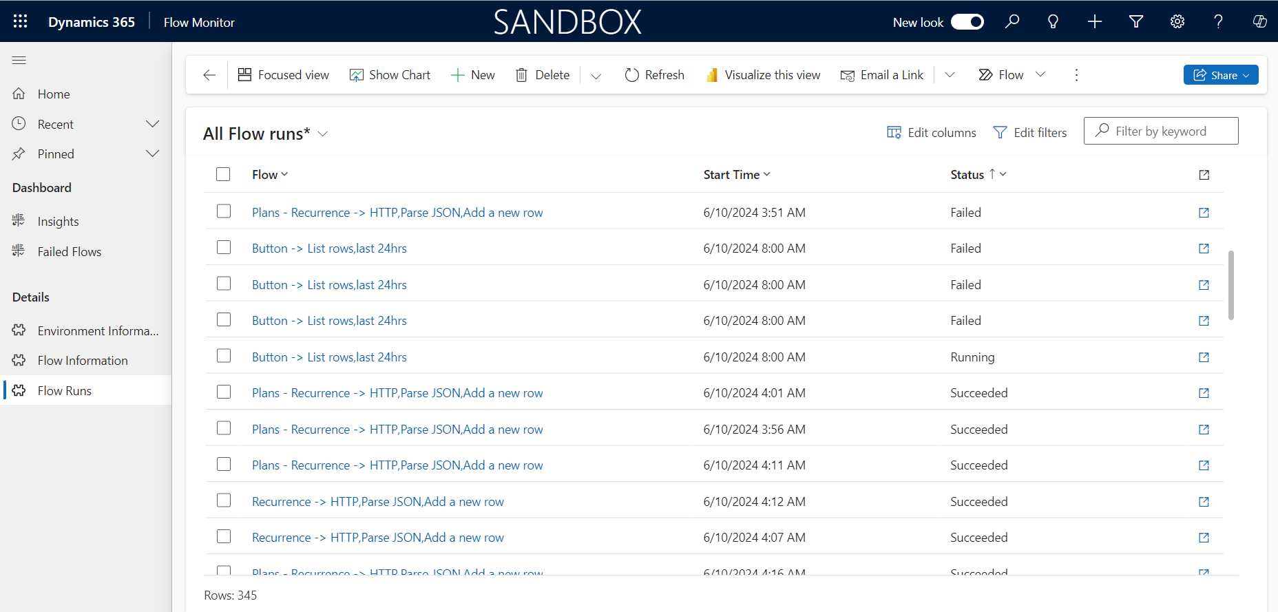 Note: To access flow details and insights, you must be the owner or co-owner of the flow and have the necessary permissions for the respective environment.