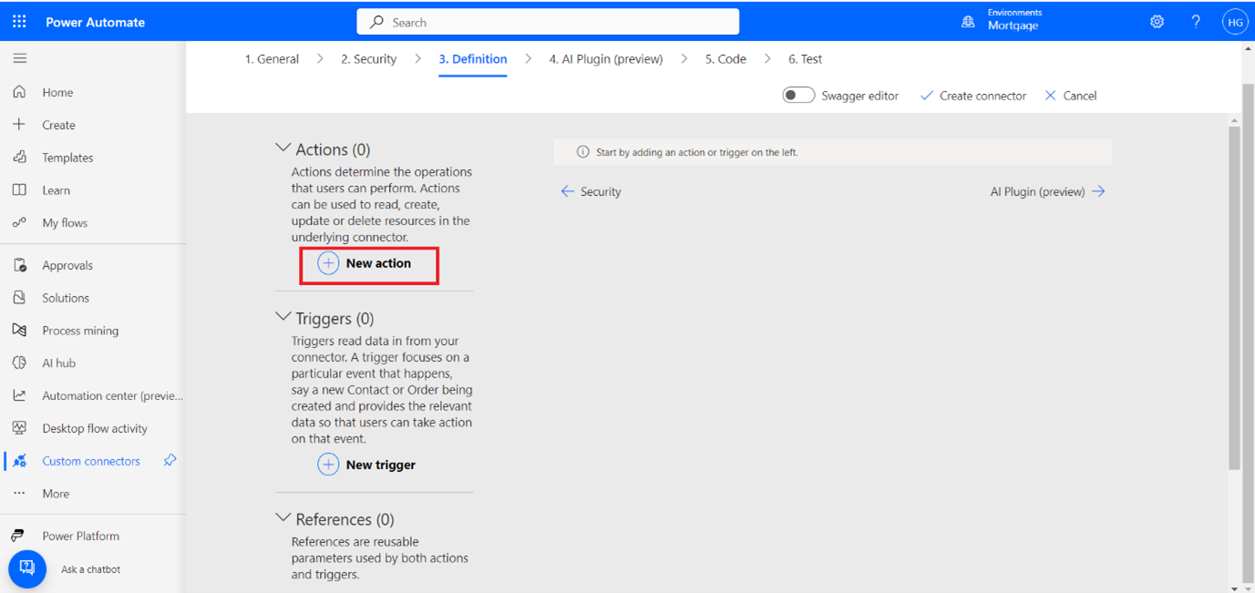 Click on New Connector and then select Create from blank to start defining your custom connector.