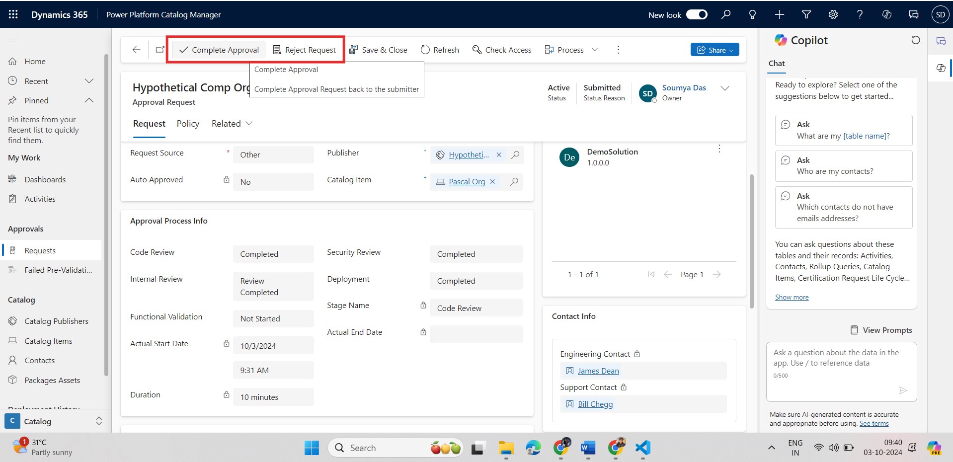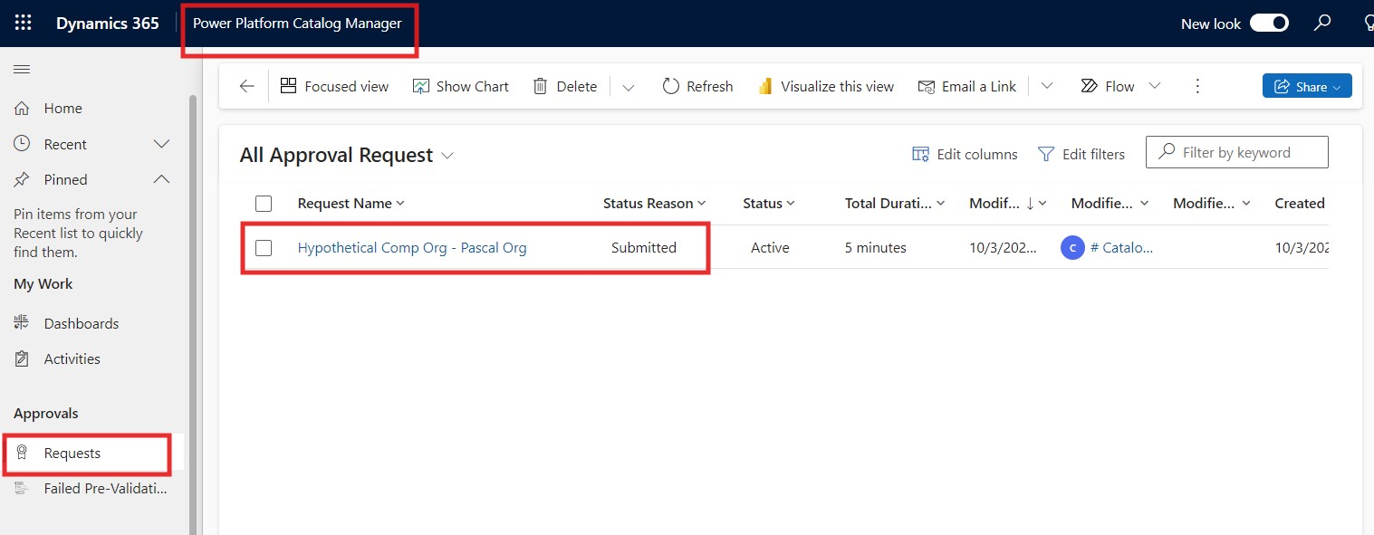 The same will be visible to the admin on the Power Platform Catalog Manager App’s Requests.