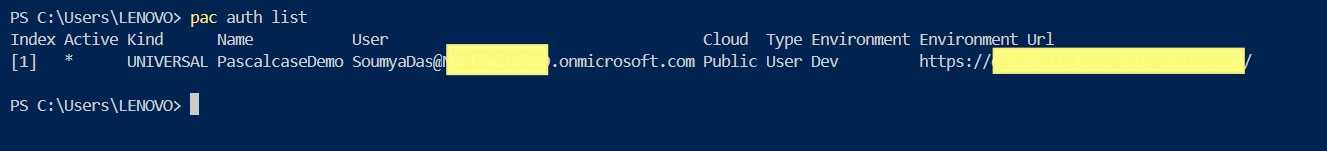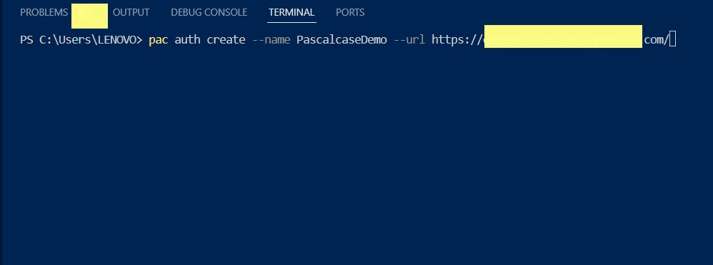 Use the format pac auth create --name <name of your environment> --url <url of environment>