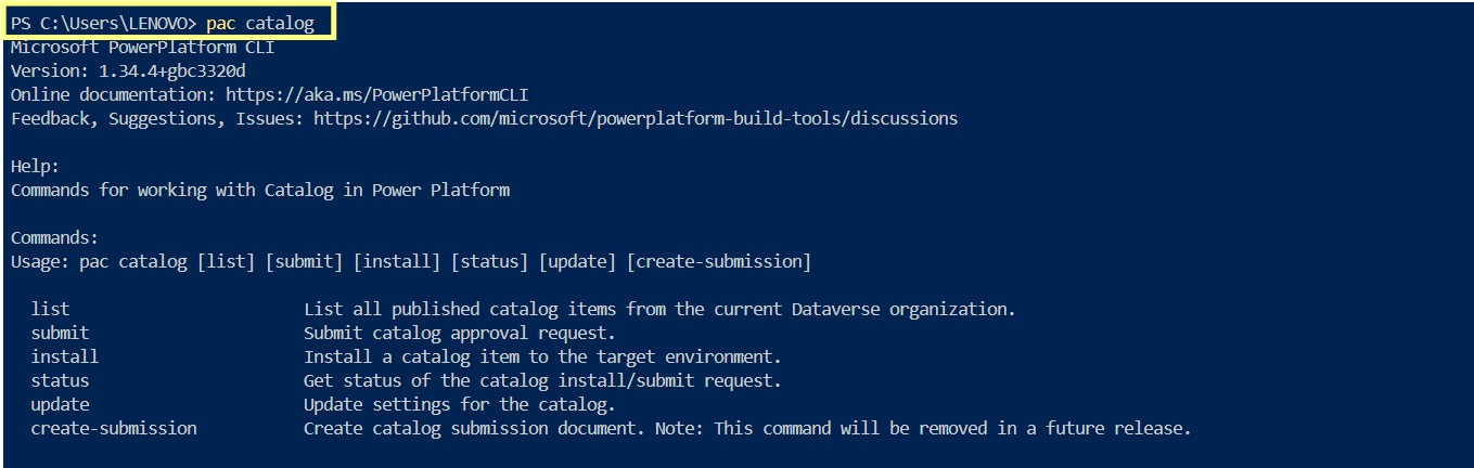 a. At first, install the Power Platform CLI as a pre-requisite before using Catalog Manager.