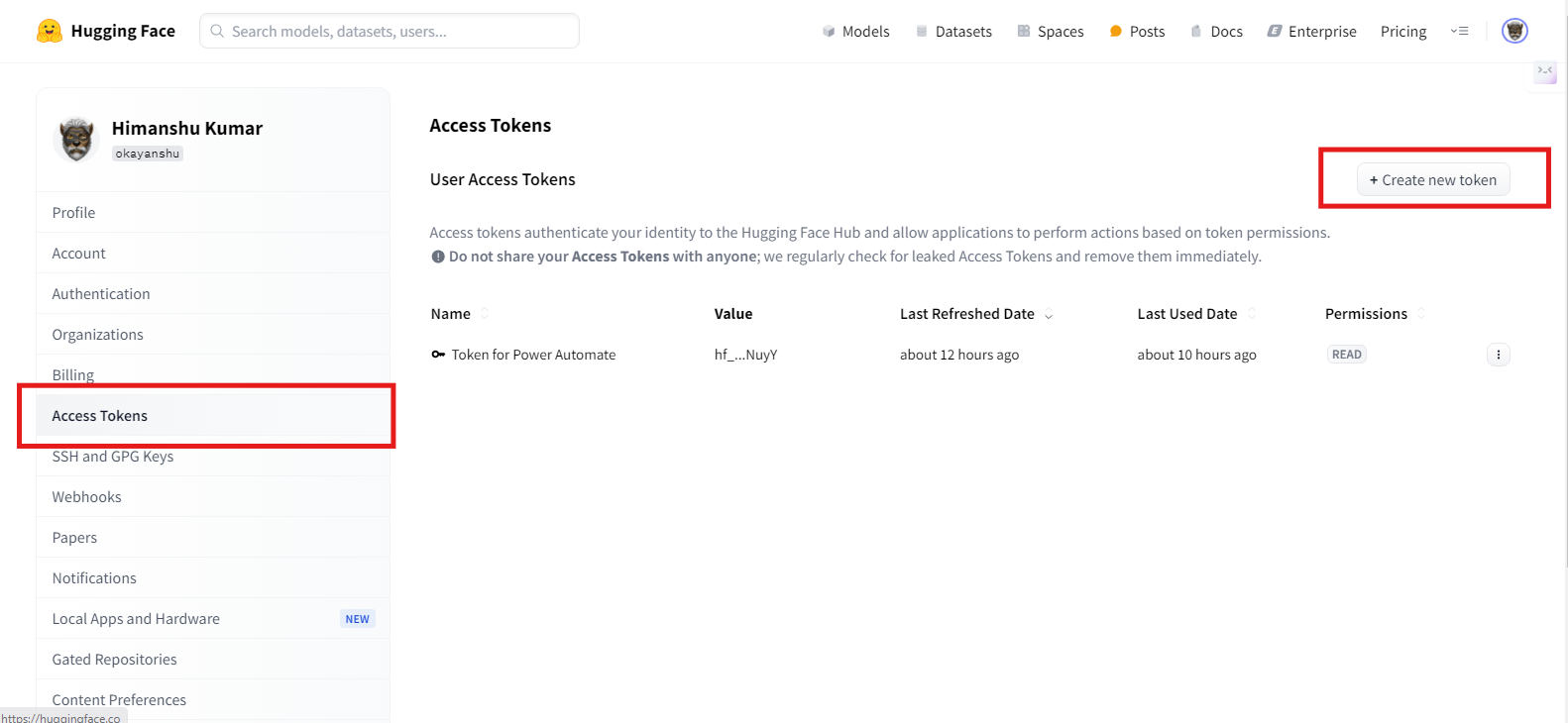 Next, click on your profile icon, go to Settings, and navigate to the Access Token section to generate a token.