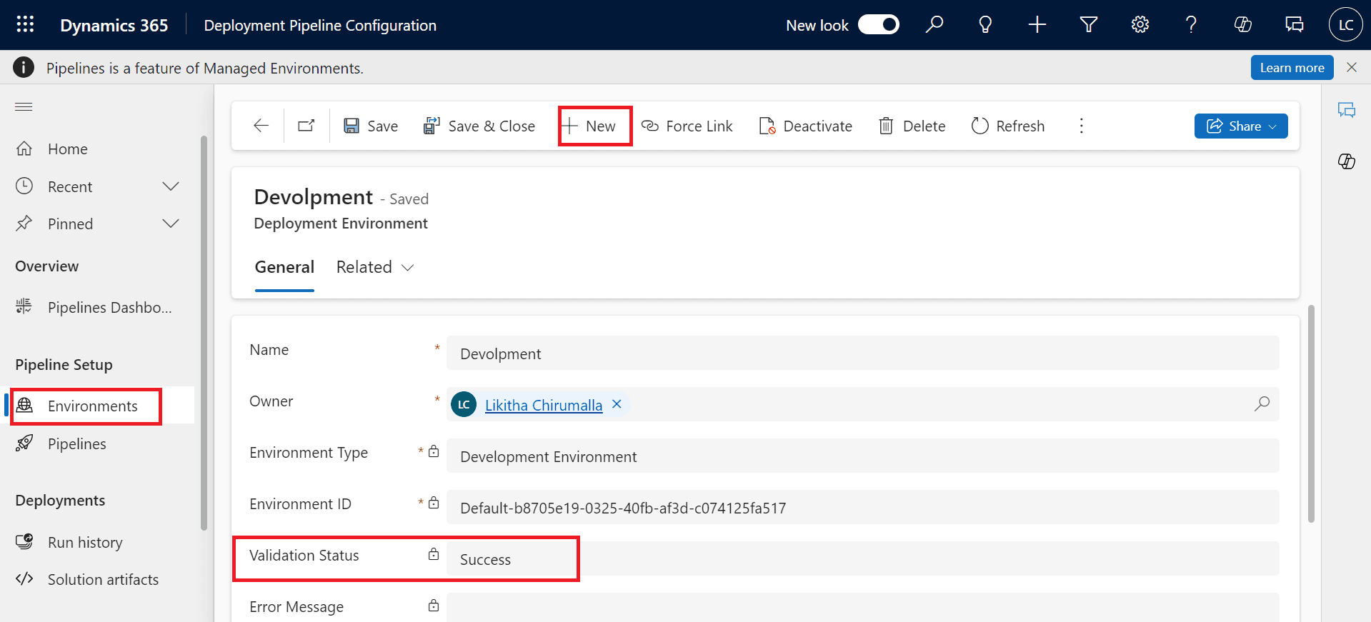 For the Development Environment, choose the environment type as the development environment. For the rest environments select the target environment. You can find the Environment ID in the Power Platform Admin Center. (https://admin.powerplatform.microsoft.com/environments).