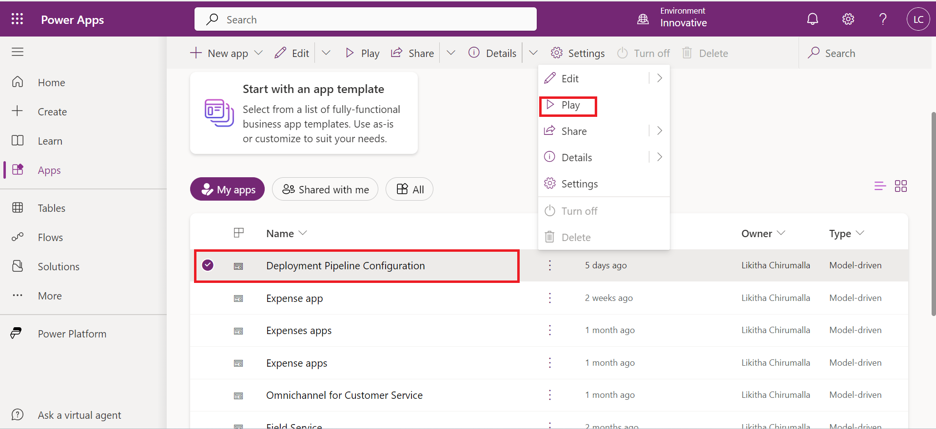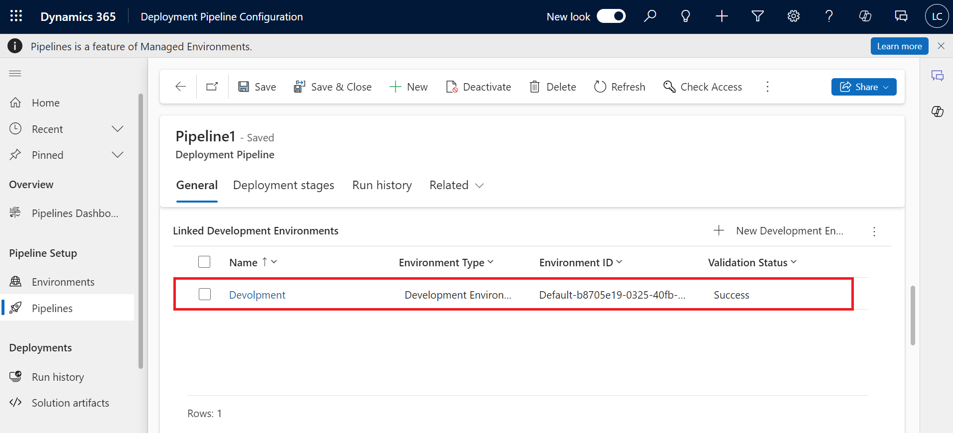 Once installed, go to Power Apps (https://make.powerapps.com/) and select the Host environment in which you have installed Power Platform Pipelines. Then go to Apps, and you will find the Deployment Pipeline Configuration App. Play that app!