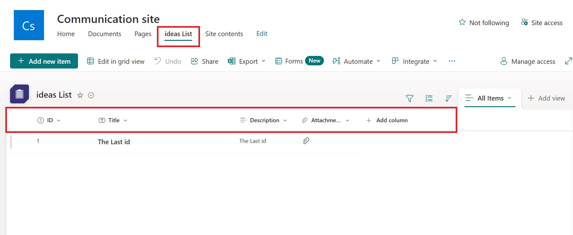 Create a list where we will store our documents and attachments. I have created my list as 'Ideas List' and added some columns as well.
