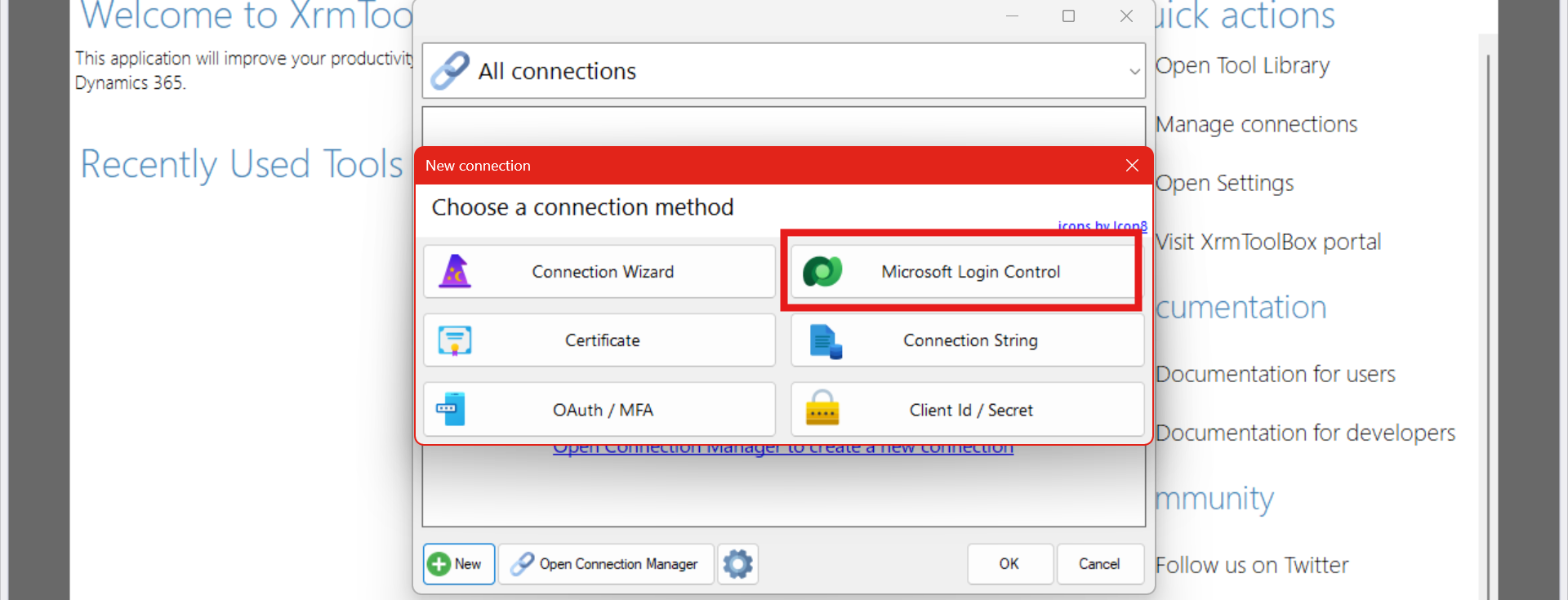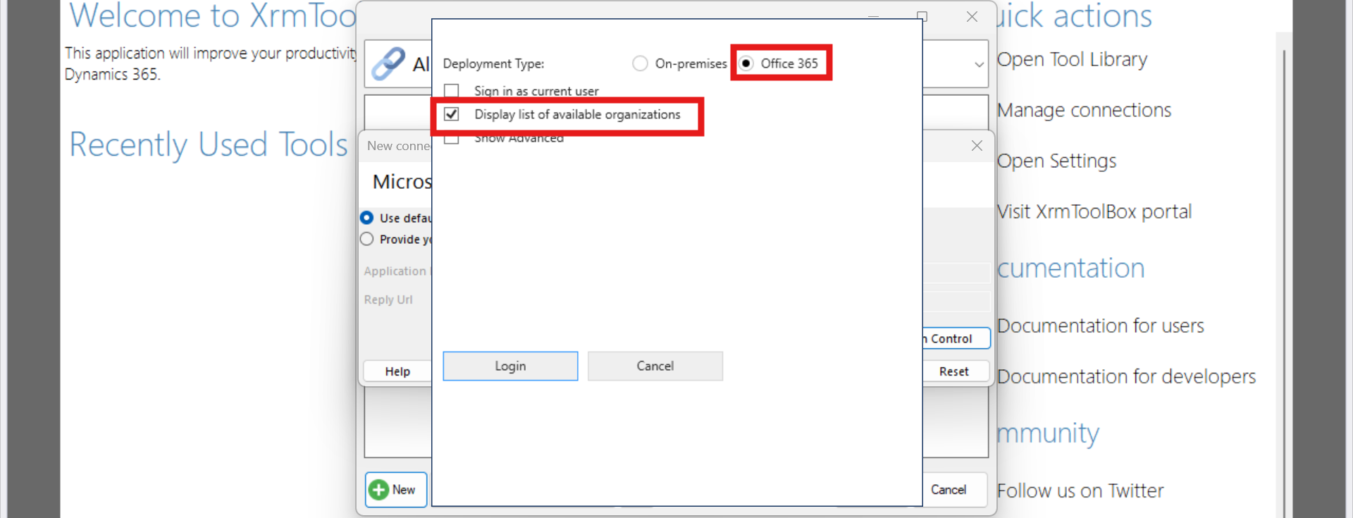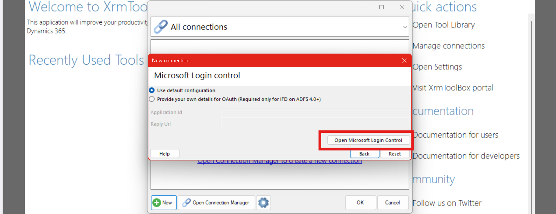 Step 1: Connect XrmToolBox to Dynamics 365 using Microsoft Login Control.