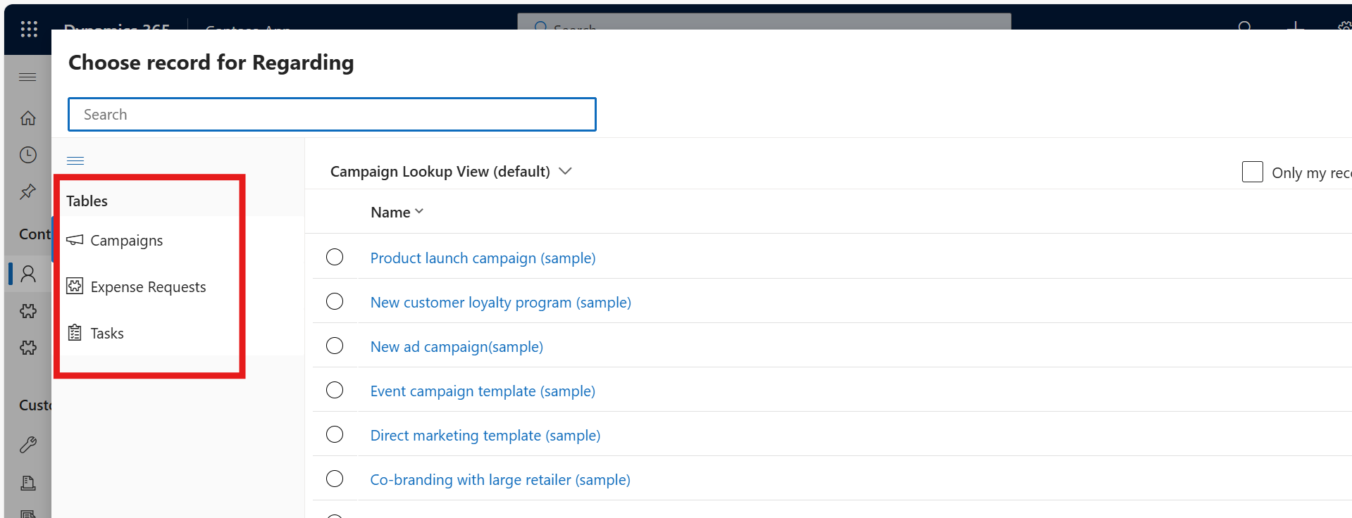 Select Expense Request, Campaign, and Task as the Referenced Tables.