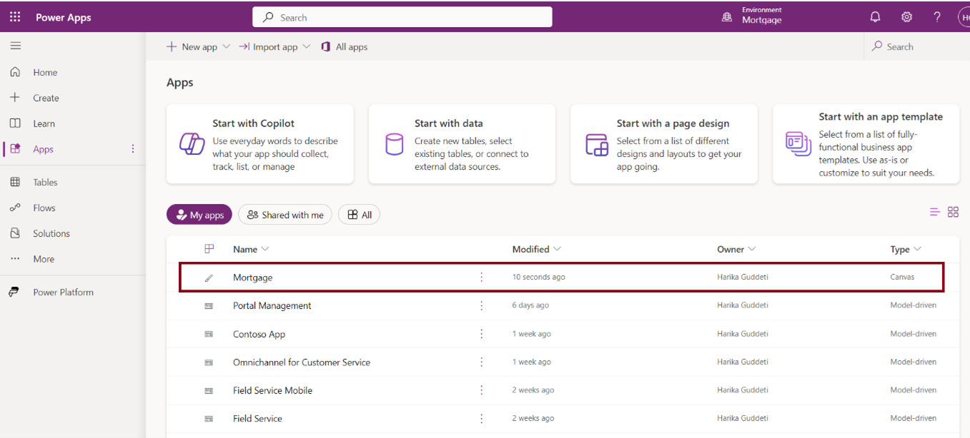 Open Power Apps and access the app you want to create or edit.