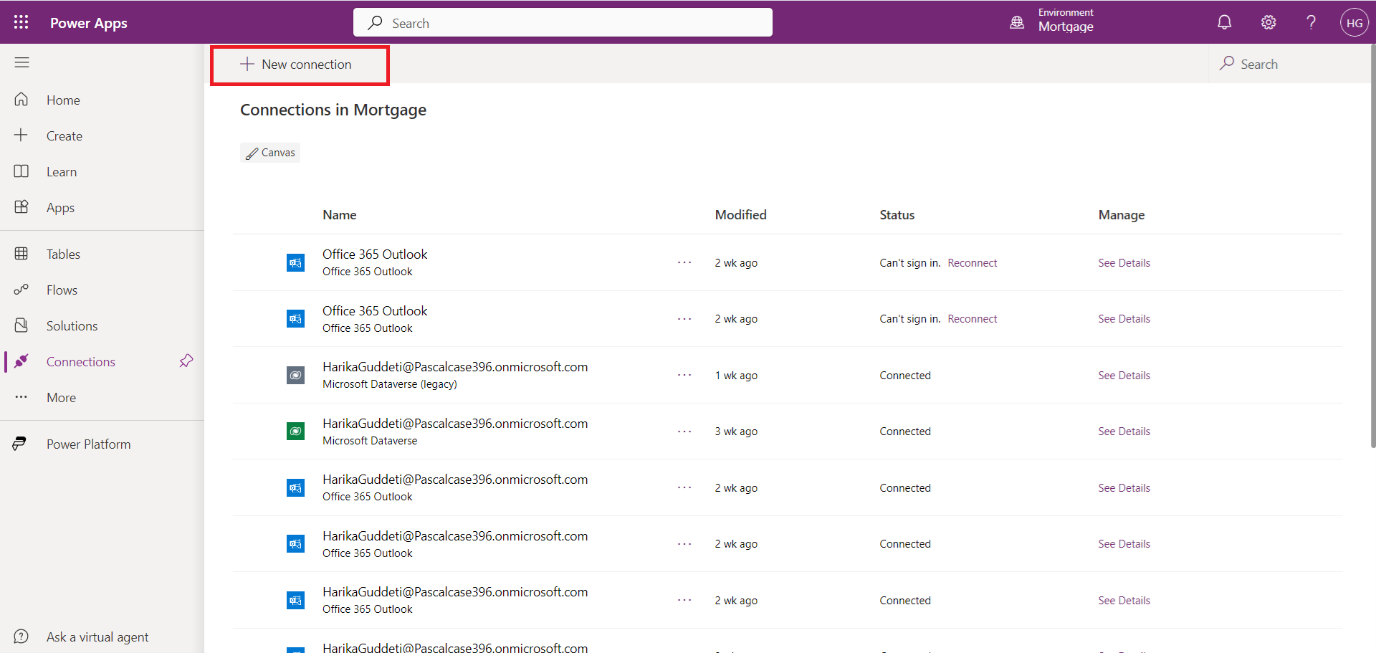 In the left pane of the dashboard, click on Connectors to view all available data connections.