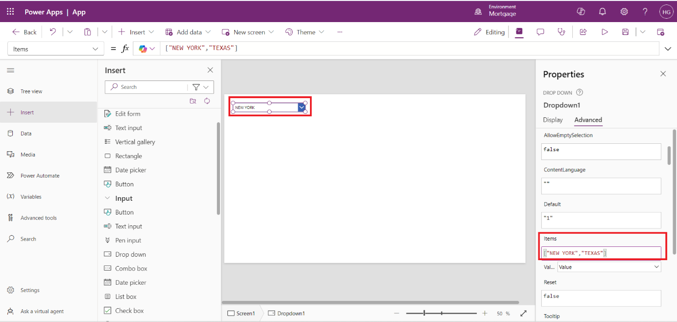 Add OnChange Function: In the dropdown’s OnChange property, add a function to handle selections.