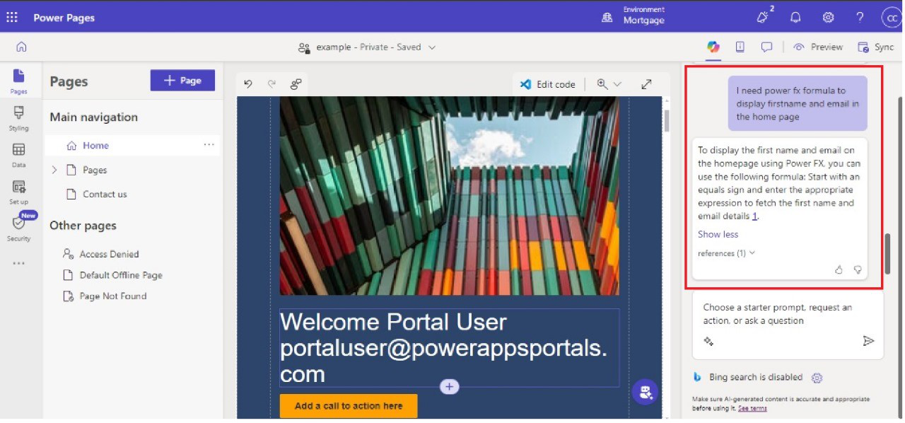 The Power Fx formula bar in Power Pages provides a user-friendly and powerful method to customize web pages without requiring extensive technical knowledge. Utilizing simple, Excel-like formulas, allows you to integrate dynamic content, tailor user experiences, and enable real-time interactivity with ease. With this feature, you can create more responsive and engaging websites, making it a valuable tool for both developers and non-developers within the Microsoft Power Platform.