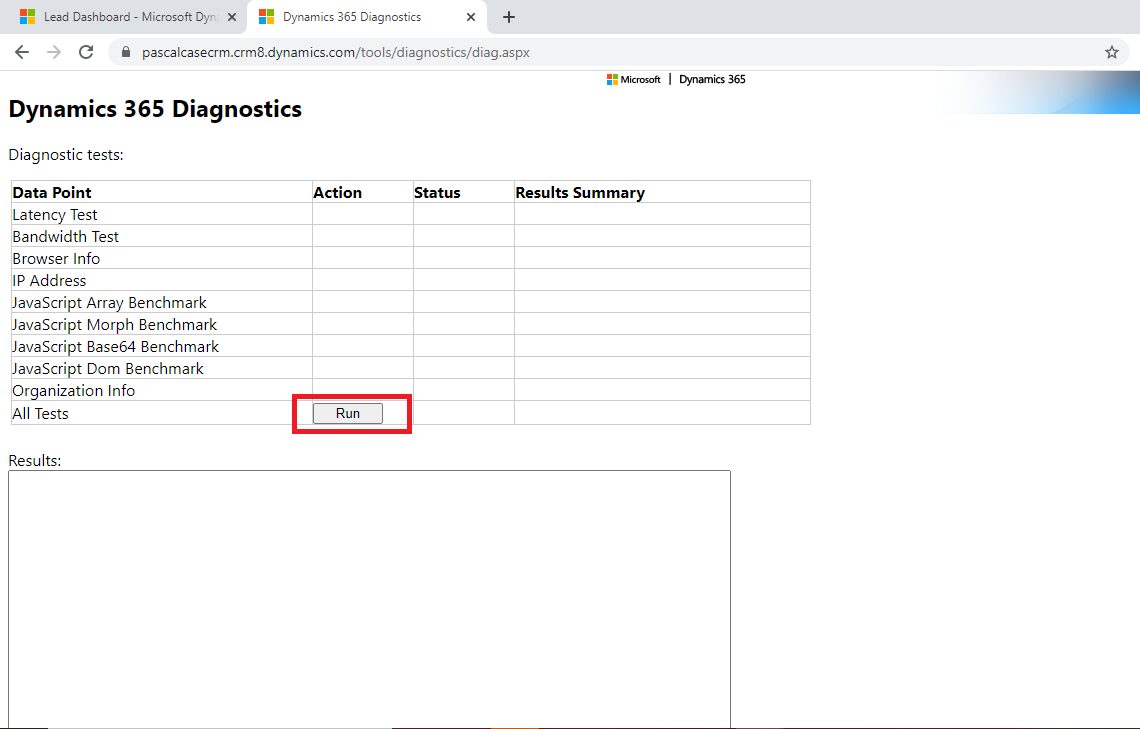 https://myorg.crm.dynamics.com/tools/diagnostics/diag.aspx