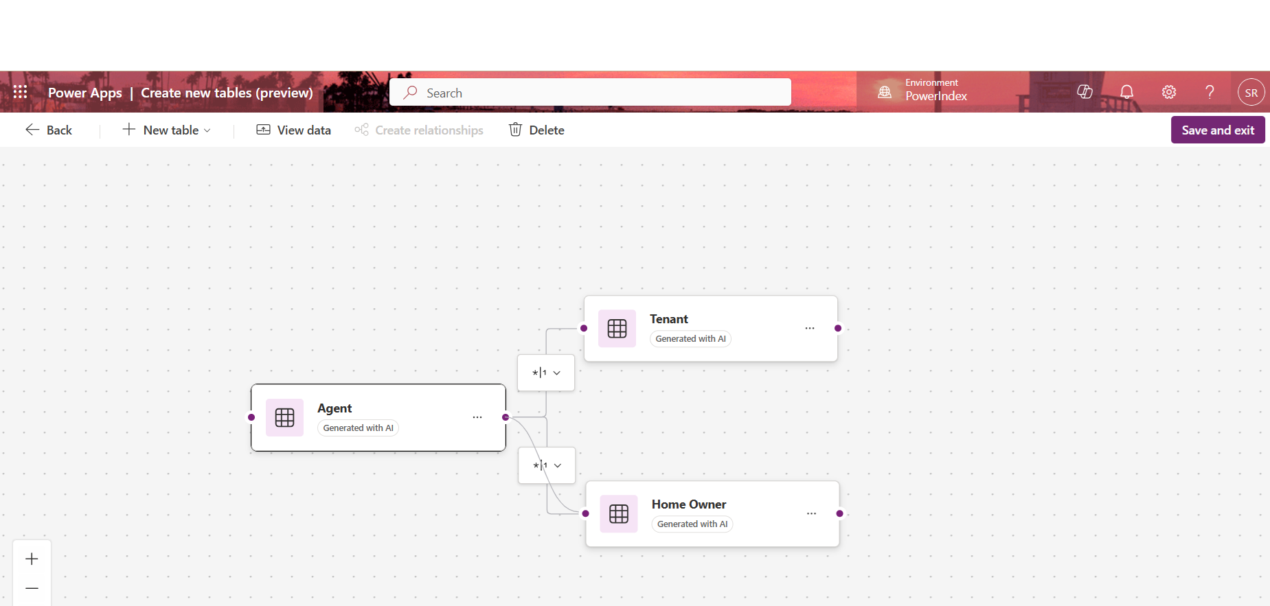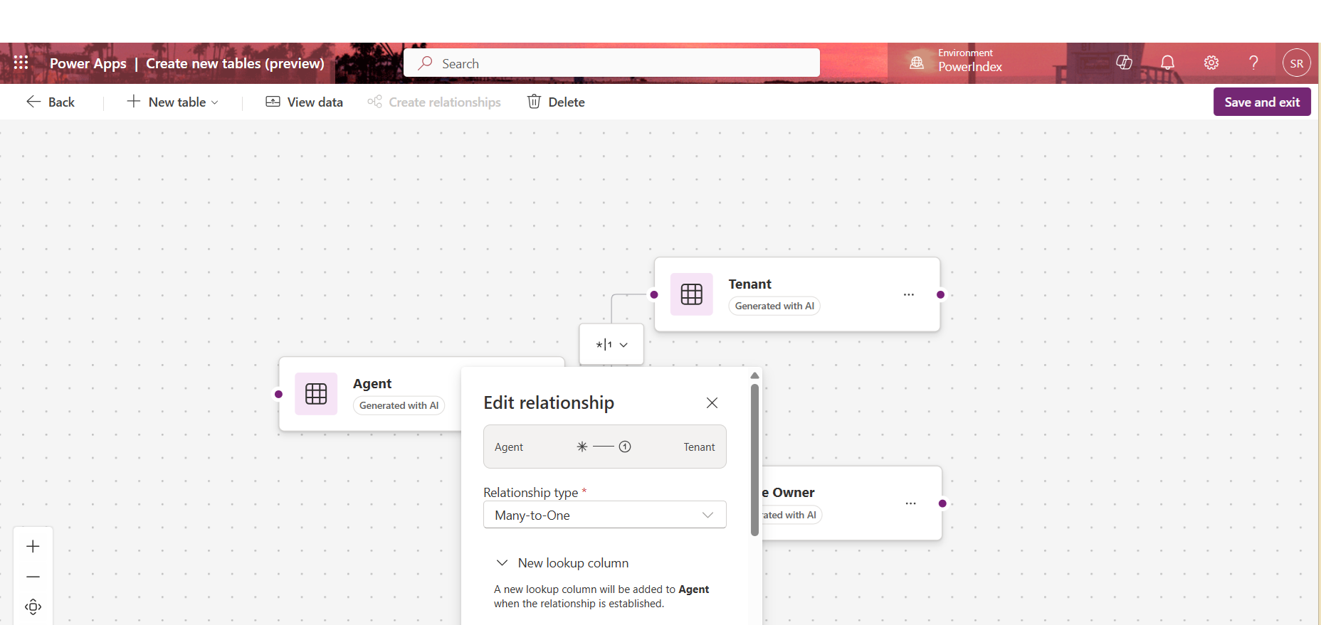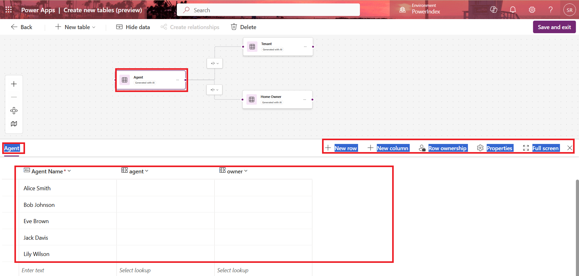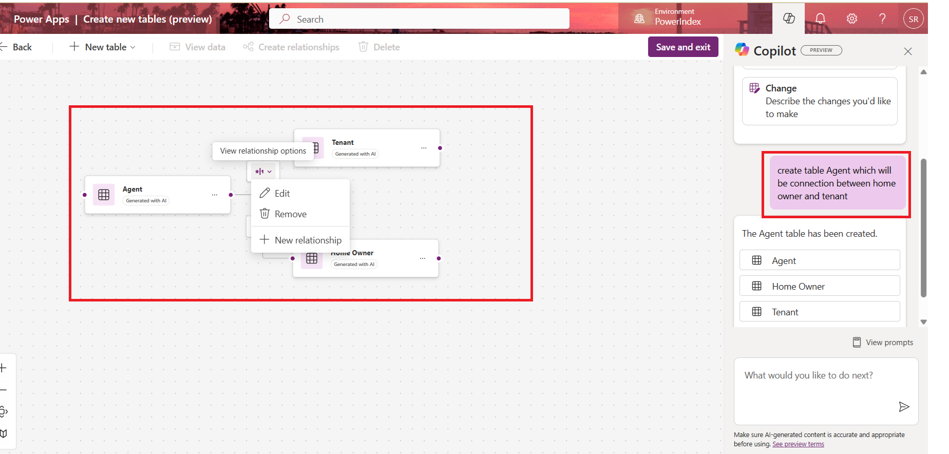 Use copilot assistance to create the tables. Here creating the Agent, Tenant and House Owner tables using Copilot.